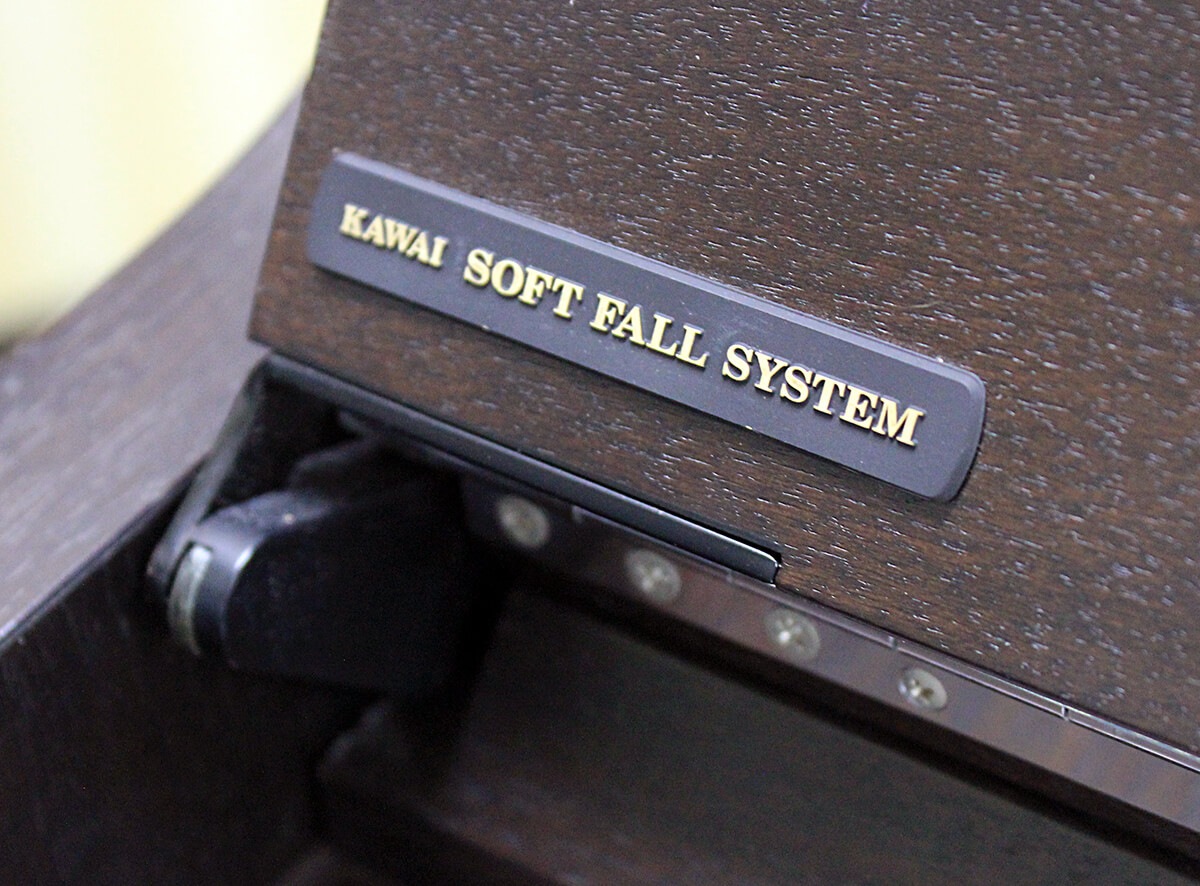 ダークウォルナットの艶を抑えた化粧板にペダルやヒンジなど、